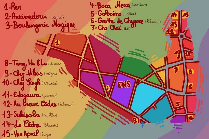 Le repas du vendredi soir étant libre, voici une petite carte des bons plans autour du campus où s'acheter à manger :
