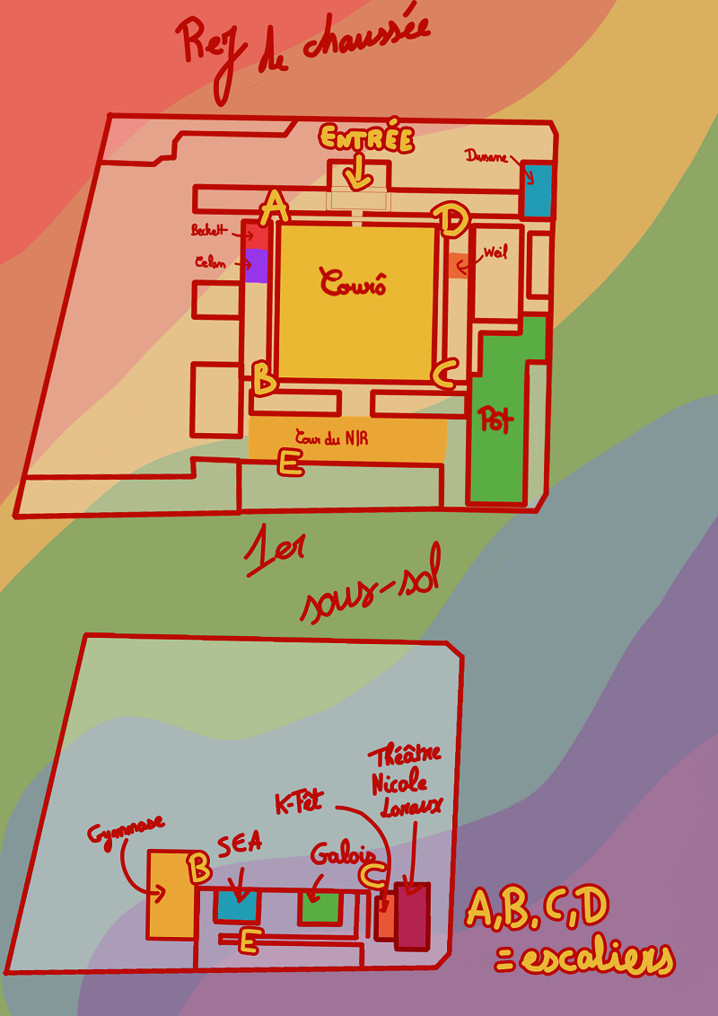 Voici enfin un plan de l'ENS où sont référencées les salles où ont lieu les activités :